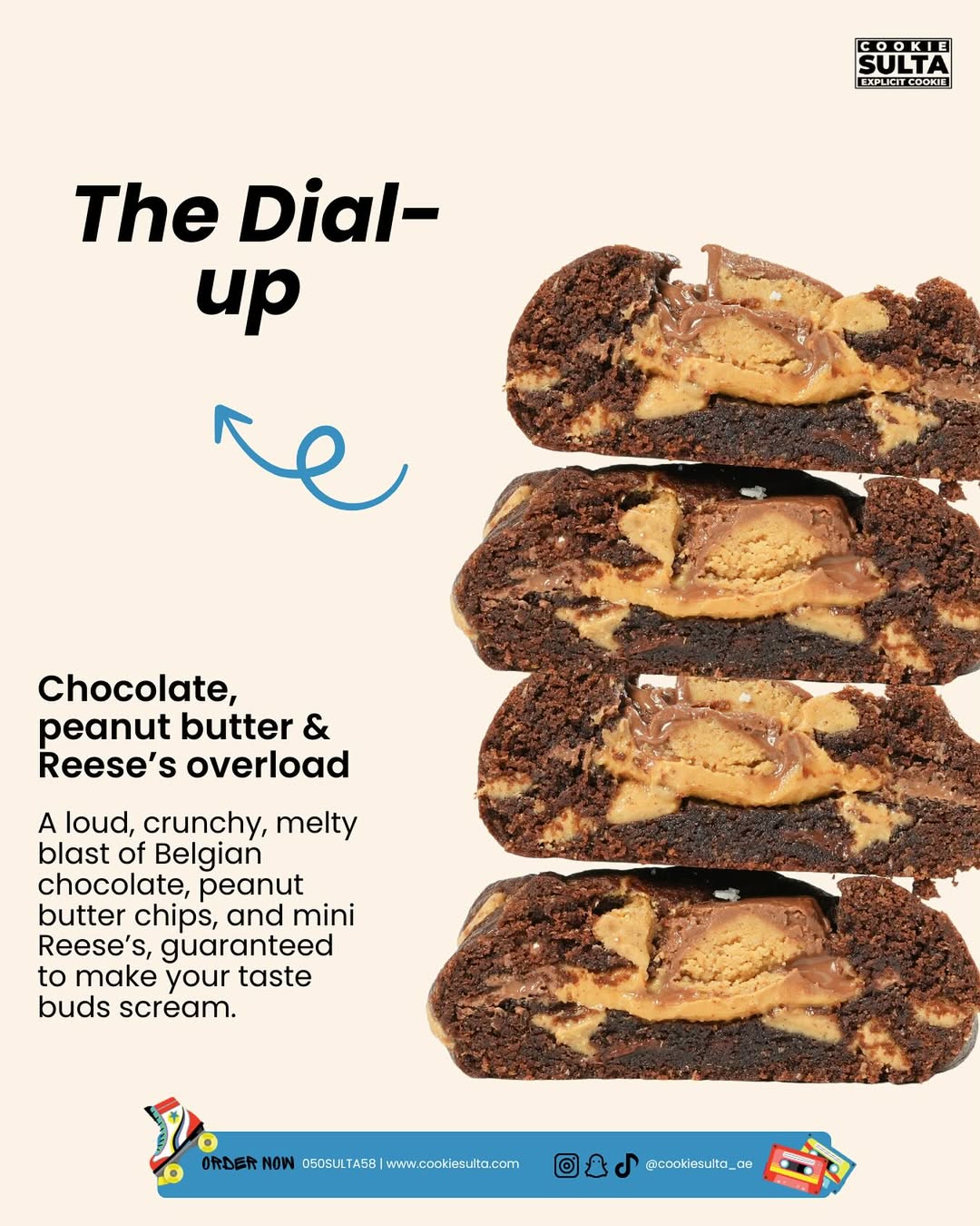 Say hello to Cookie Sulta — Dubai’s new queen of cookies, with bold levels of indulgence, retro vibes and deliciously addictive flavours. Each cookie is a handcrafted masterpiece, baked fresh and delivered right to your door. Whether you're treating yourself or sweetening up someone’s day, Cookie Sulta delivers flavour, flair, and that perfect cookie crumble.