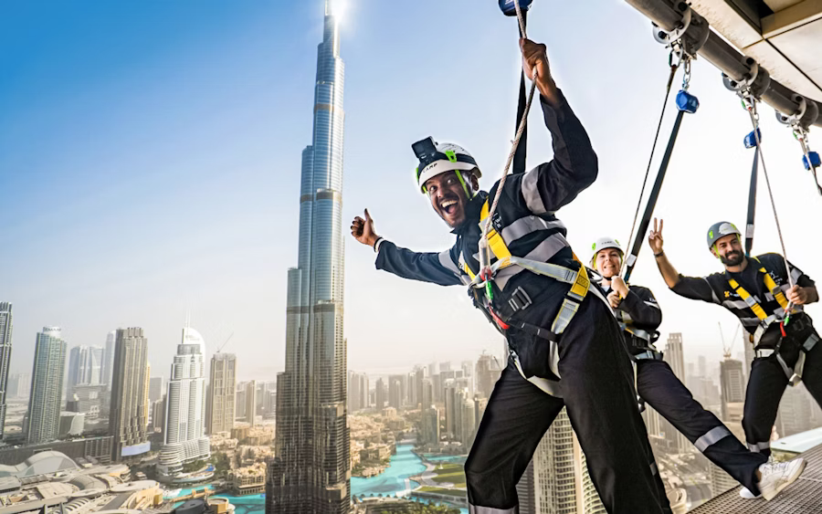 Get your adrenaline fix with the Sky Views Edge Walk in Dubai! 🌆 Walk hands-free at the edge of the Address Sky View Tower, 219.5m above the ground, with no barriers – just breathtaking views of the Burj Khalifa and Downtown Dubai. Safely harnessed, you’ll experience one of the most thrilling attractions in the city.